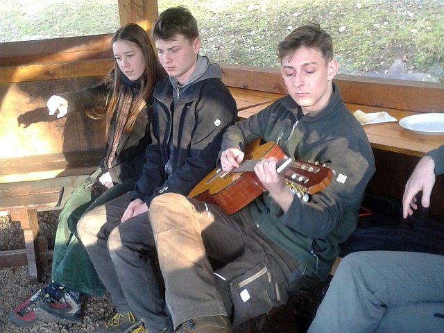 Návrat jara pracovní kroužek oslavil úklidem prostor kolem altánu - shrabali jsme listí, naštípali dřevo a uklidili větve z pořezaných stromů. Pro pana školníka jsme natřeli zahradní kolečko a z cesty k zadnímu vchodu do auly jsme odklidili kameny.